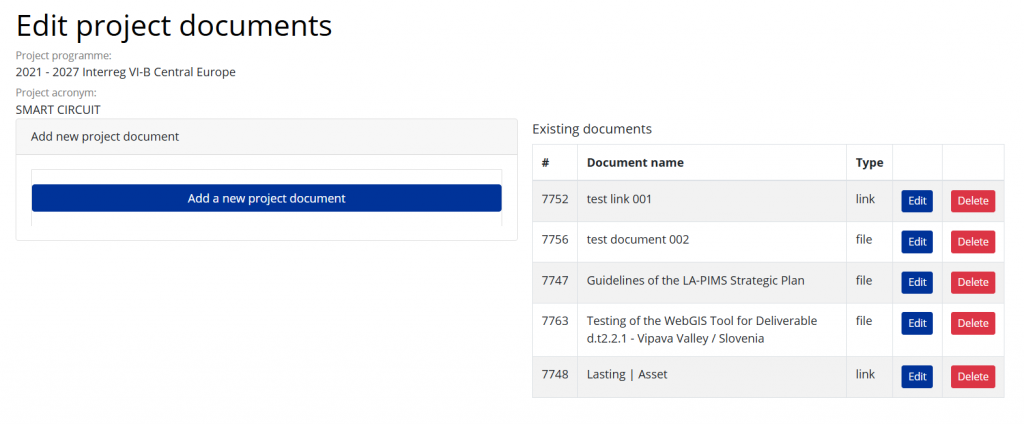 Keep.eu offers a feature through which programme editors can autonomously add or associate documentation to projects financed by their programmes, either by uploading it directly to the platform or by linking or referencing it. This page is a guide for these users.