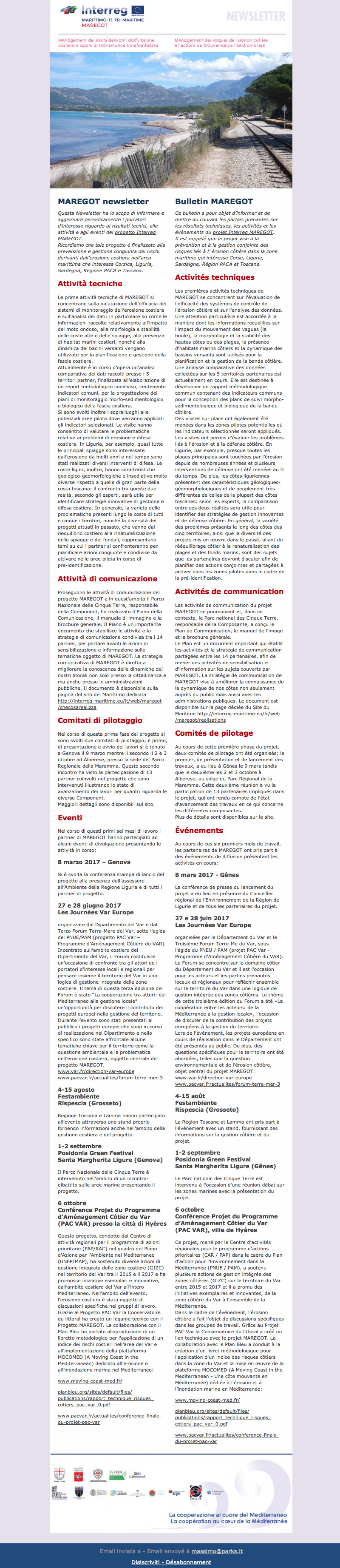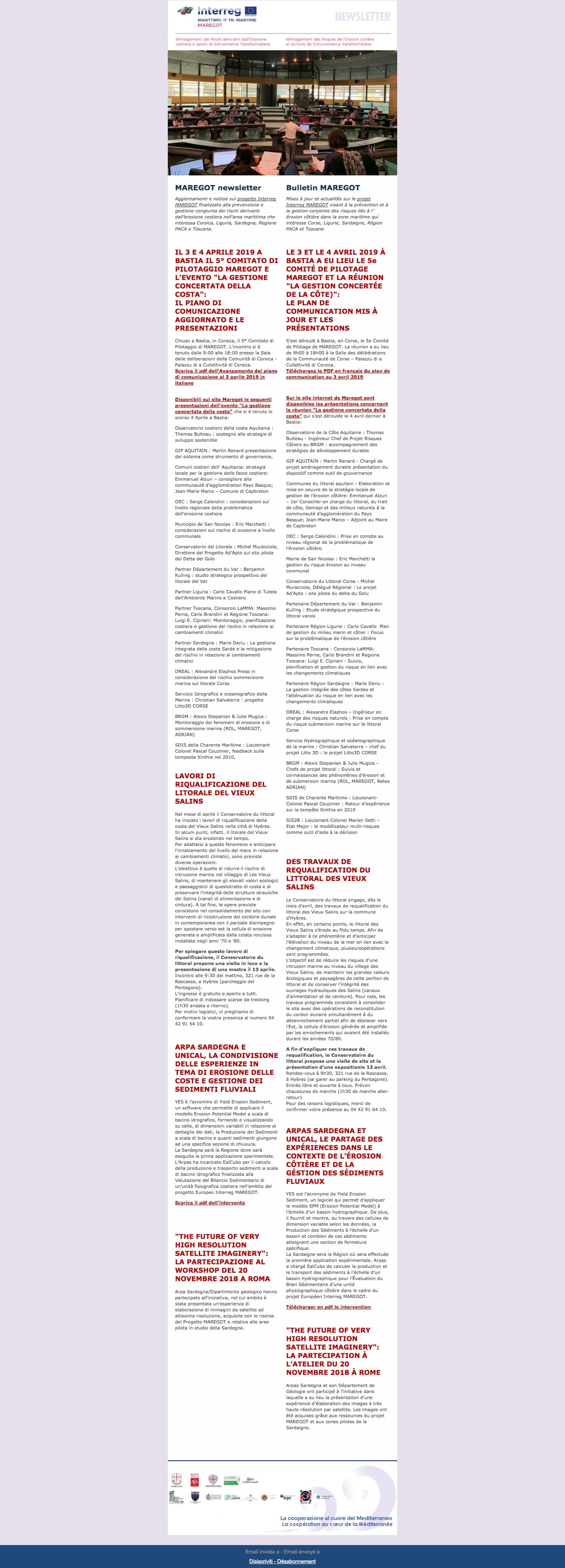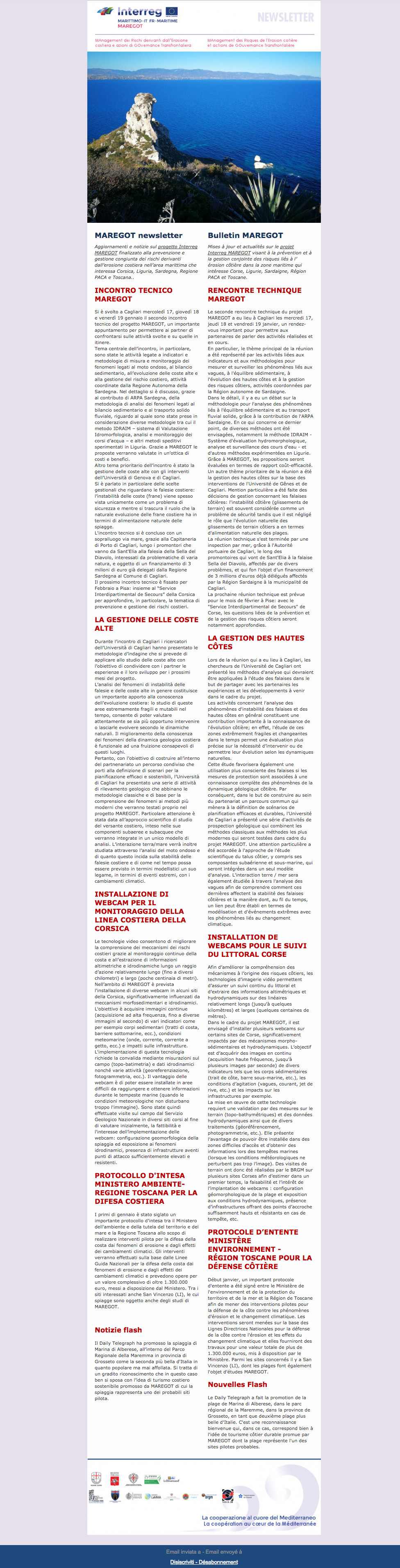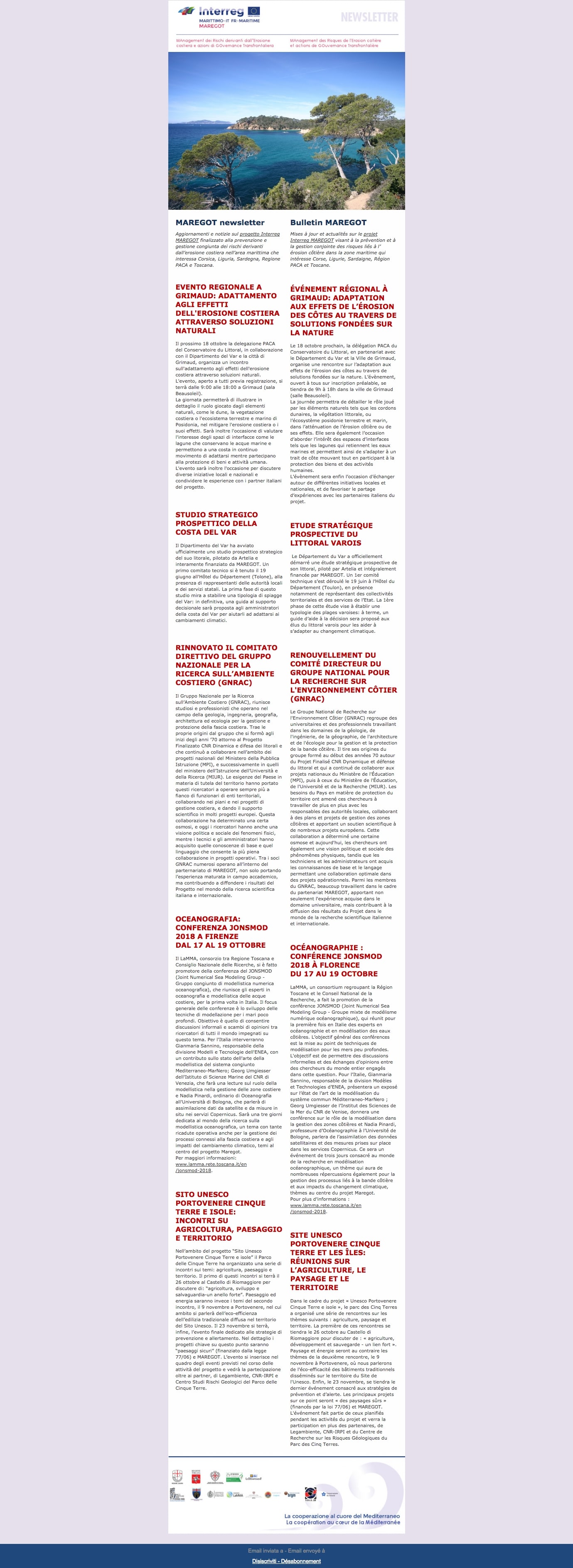 - "Management des risques découlant de l’érosion côtière e des actions de Gouvernance transfrontalière / T2.1.2 Proposition méthodologique pour l'outil de prévision et de gestion des risques côtiers à long terme en référence aux processus d'érosion côtière / T2.1.1 Proposition méthodologique pour l’instrument opérationnel de prévision et gestion du risque côtier à court terme par référence à tempêtes marines et événements extremes. (Activité 2.1 de la composante T2 «Stratégie transfrontalière pour